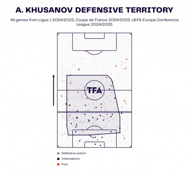 2024/2025赛季库萨诺夫在朗斯比赛中的防守边界