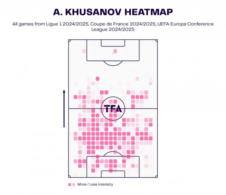 2024/2025赛季库萨诺夫在朗斯比赛中的热图
