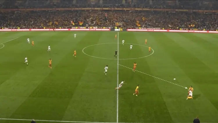 上面这个案例中,对方试图传球给套边插上的边后卫,而库萨诺夫注意到了潜在的威胁,并开始想边路移动,以应对来自边路的威胁。
